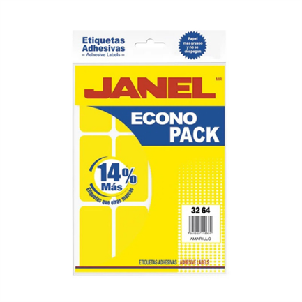 Etiquetas Adhesivas Janel Econopack Fluorescente 32x64mm Color Amarillo Sobre C/96